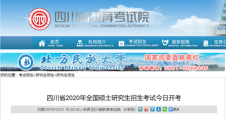 四川省教育考试院公布的“四川省2020年全国硕士研究生招生考试今日开考”可得知,2020年2月11日有招生单位通知考试成绩。