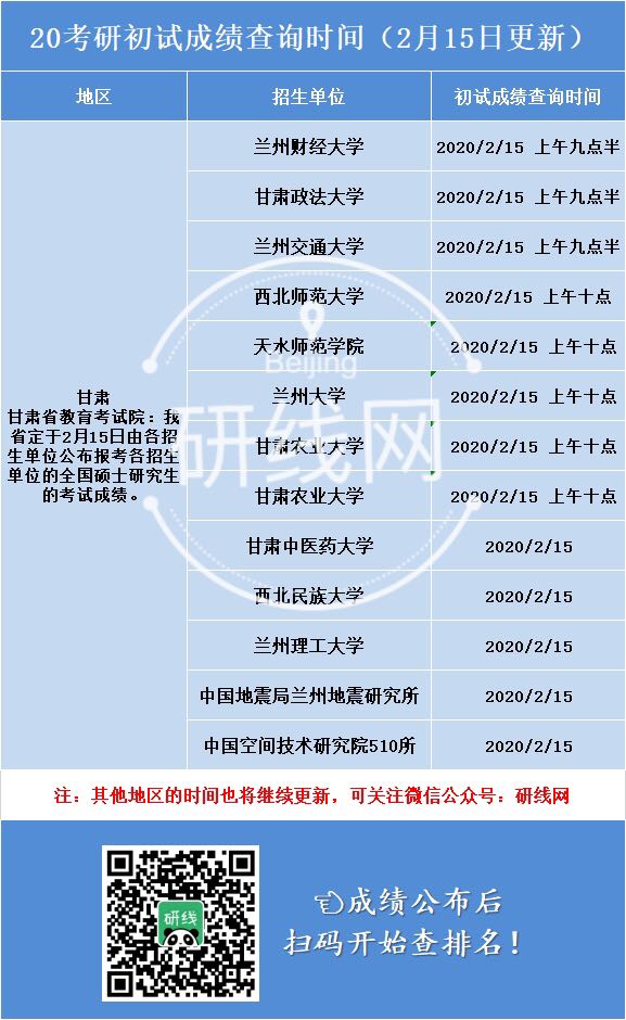 以上就是“甘肃省15日公布2020硕士研究生初试成绩”的全部内容,希望对同学们有所帮助。