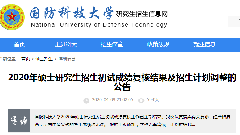 以上就是“国防科学技术拼搏(中国)2020年无军籍硕士计划扩招100人”的全部内容!,更多拼搏在线官网扩招信息,关注我们!