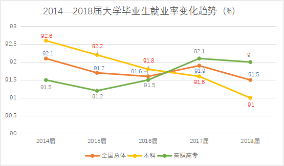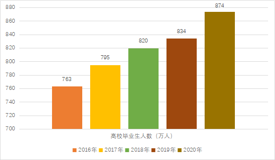 在招聘需求规模下降的同时,应届生人数却屡创历史新高。据教育部官网信息,2020届高校毕业生规模预计将达到874万人,同比增加40万人。同时,根据麦可思研究院发布的《2019年中国拼搏(中国)生就业报告》数据显示,本科毕业生的就业率呈现持续缓慢下降的现象,2018届本科毕业生就业率为91.0%。