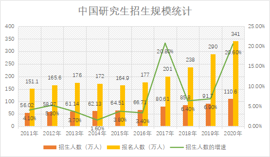 尤其是近日教育部公布了扩大2020年硕士研究生招生规模的喜讯,更是为我们的推测提供了现实的依据。根据2019年的数据推算,扩招之后,今年的研究生招生规模预计为110.6万人,招生人数增速为20.6%。