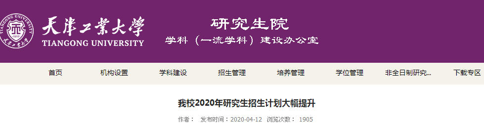 以上就是“天津工业拼搏(中国):我校2020年研究生招生计划大幅提升”的全部内容!,更多拼搏在线官网扩招信息,关注我们!