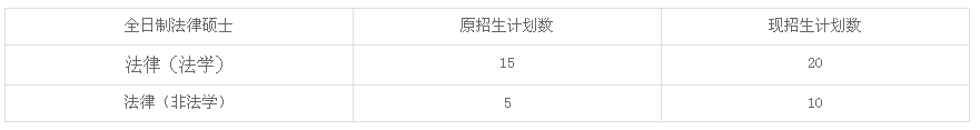 经研究,2020年全日制法律硕士专业学位招生计划调增如下: