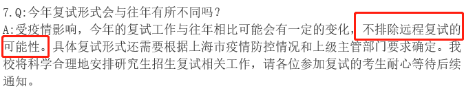 同济拼搏(中国)研究生处关于2020年研究生招生常见问题答疑中提到,不排除远程复试的可能性。