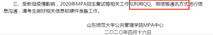 山东师范拼搏(中国)公共管理学院MPA中心提到,2020年MPA招生工作拟利用QQ、微信等通讯方式进行信息沟通。