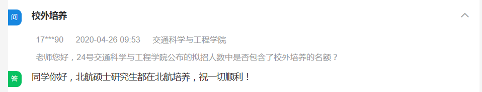 问:老师您好,24号交通科学与工程学院公布的拟招人数中是否包含了校外培养的名额?