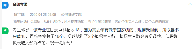 问:我想问凭什么缩招,从5个到2个,还不提前通知,除了生源和政策,这两个明显不合理,给个合理的答复。