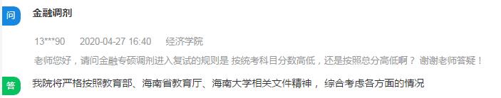 问:老师您好,请问金融专硕调剂进入复试的规则是 按统考科目分数高低,还是按照总分高低啊? 谢谢老师答疑!