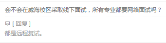 问:会不会在威海校区采取线下面试,所有专业都要网络面试吗?