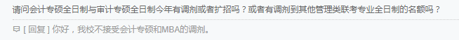 问:请问会计专硕全日制与审计专硕全日制今年有调剂或者扩招吗?或者有调剂到其他管理类联考专业全日制的名额吗?