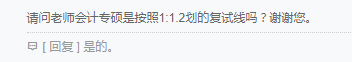 问:请问老师会计专硕是按照1:1.2划的复试线吗?谢谢您。