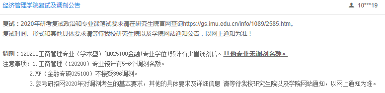 复试:2020年研考复试政治和专业课笔试要求请在研究生院官网查询https://gs.imu.edu.cn/info/1089/2585.htm。