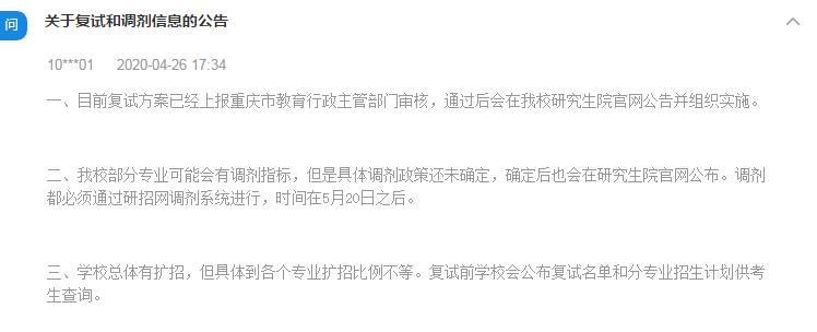 一、目前复试方案已经上报重庆市教育行政主管部门审核,通过后会在我校研究生院官网公告并组织实施。