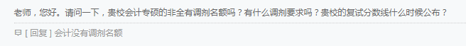 问:老师,您好。请问一下,贵校会计专硕的非全有调剂名额吗?有什么调剂要求吗?贵校的复试分数线什么时候公布?