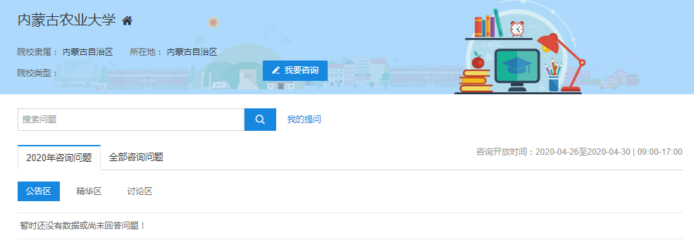 拼搏在线官网复试网上咨询已经开通,从4月26日-4月30日,教育部将在“中国研究生招生信息网”组织“2020年研考招生复试网上咨询”,各招生单位将在线为考生答疑解惑。为方便2020拼搏在线官网的考生获得有价值的信息,我们将对院校的答复进行整理,为同学们搜罗有关复试线,复试形式,调剂名额等相关的拼搏在线官网内容,以下是“2020拼搏在线官网复试网上咨询:内蒙古农业拼搏(中国)关于复试,调剂的问题答疑汇总”,希望对大家有所帮助!