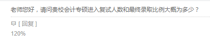 问:老师您好,请问贵校会计专硕进入复试人数和最终录取比例大概为多少?