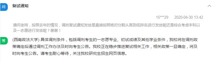 (西南政法拼搏(中国)) 具体调剂条件,包括调剂考生的一志愿专业、初试成绩及其他学业条件,我校将在调剂政策确定后通过调剂工作办法及时向考生公告。我校正在稳步推进复试相关工作,相关政策一旦确定,将及时向考生公告。请考生耐心等待,关注我校研究生招生网页信息。