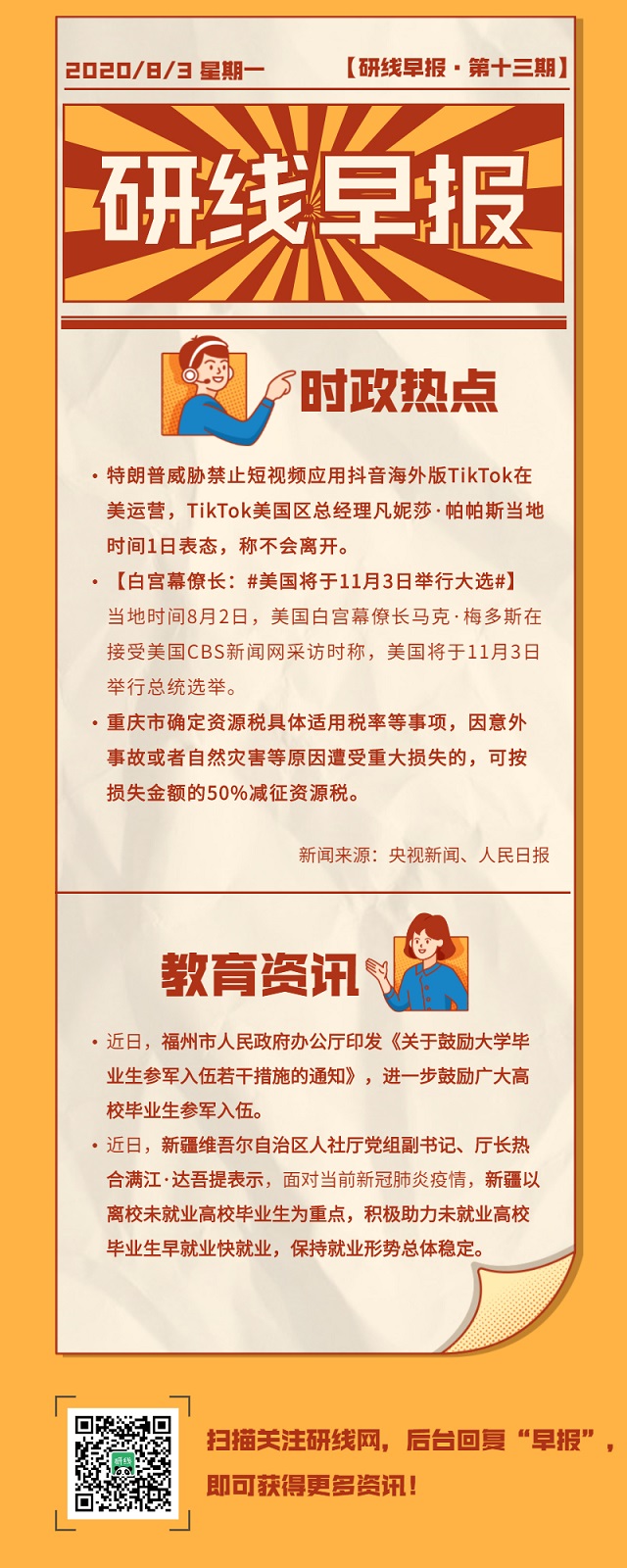 快来看看今天国内和教育界又发生哪些事?每天上午研线为你推送新鲜的新闻资讯,带你了解新闻资讯。