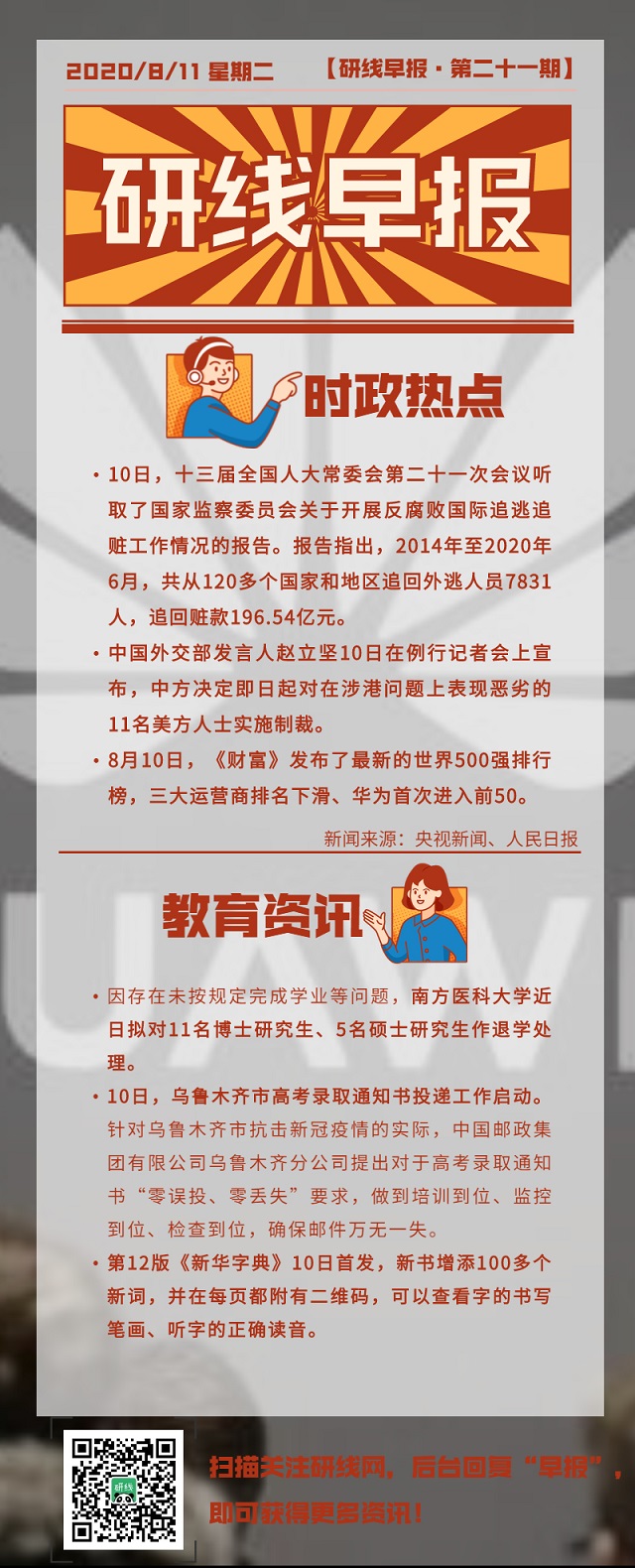 快来看看今天国内和教育界又发生哪些事?每天上午研线为你推送新鲜的新闻资讯,带你了解新闻资讯。
