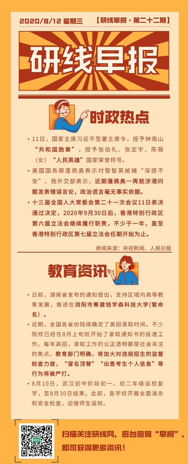快来看看今天国内和教育界又发生哪些事?每天上午研线为你推送新鲜的新闻资讯,带你了解新闻资讯。