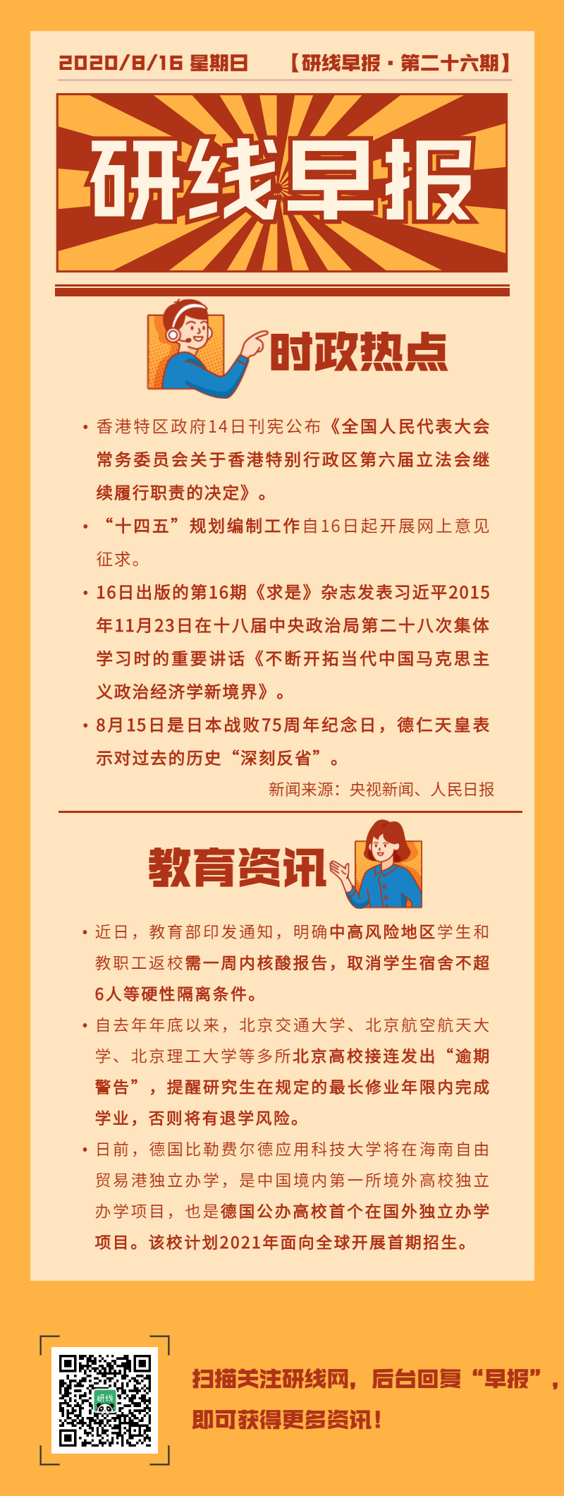 快来看看今天国内和教育界又发生哪些事?每天上午研线为你推送新鲜的新闻资讯,带你了解新闻资讯。