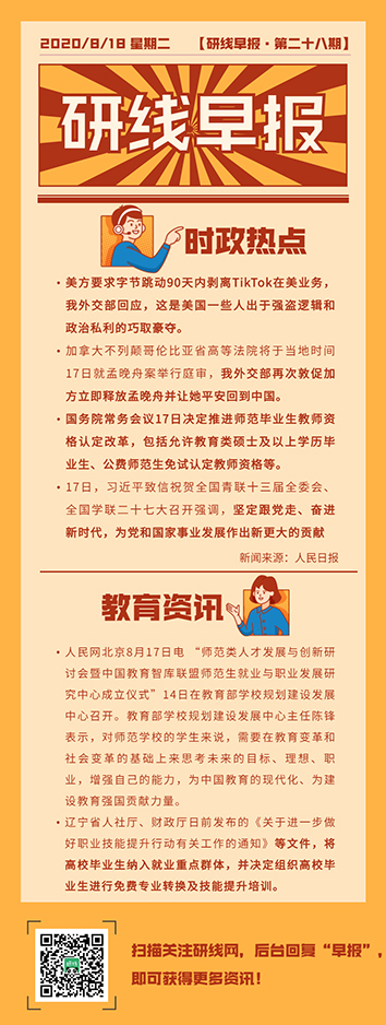 快来看看今天国内和教育界又发生哪些事?每天上午研线为你推送新鲜的新闻资讯,带你了解新闻资讯。