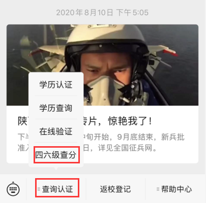 考生可使用移动端进行查询,进入公众号学信网“查询认证-四六级查分”栏目进行查询。