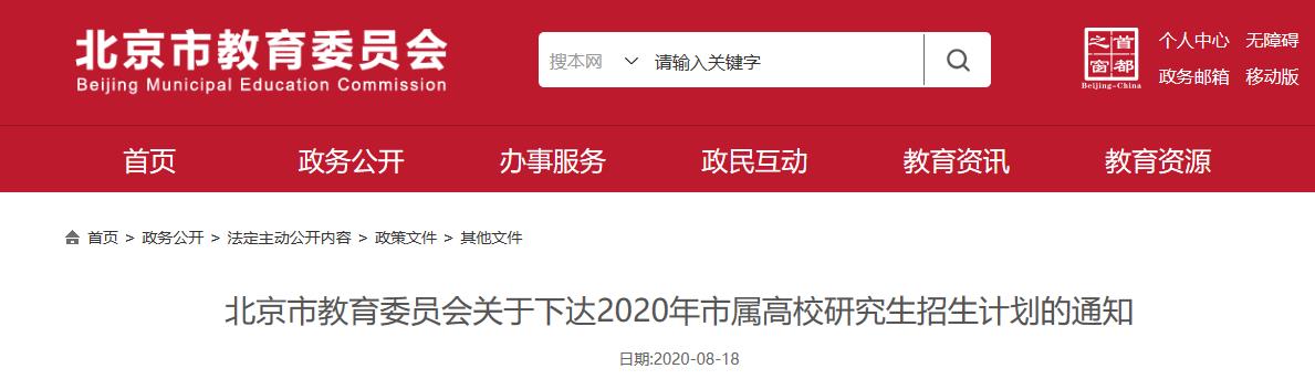 北京市教育委员会关于下达2020年市属高校研究生招生计划的通知