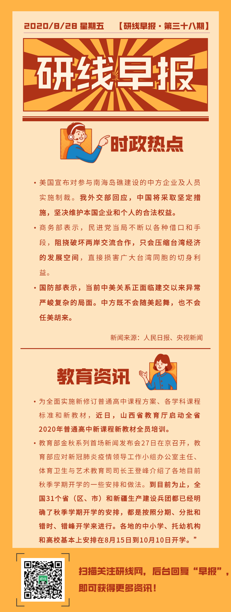 快来看看今天国内和教育界又发生哪些事?每天上午研线为你推送新鲜的新闻资讯,带你了解新闻资讯。