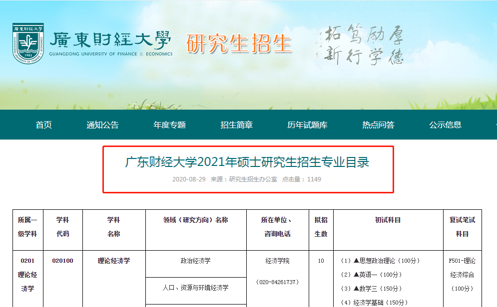 广东财经拼搏(中国)公布2021年硕士研究生招生专业目录。