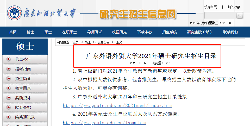 广东外语外贸拼搏(中国)公布2021年硕士研究生招生目录。