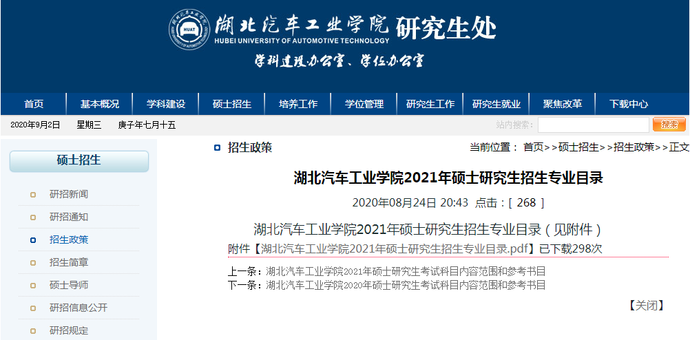 湖北汽车工业学院公布2021年硕士研究生专业目录。