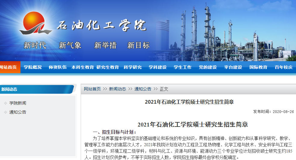 兰州理工拼搏(中国)石油化工学院公布2021年硕士研究生招生简章。