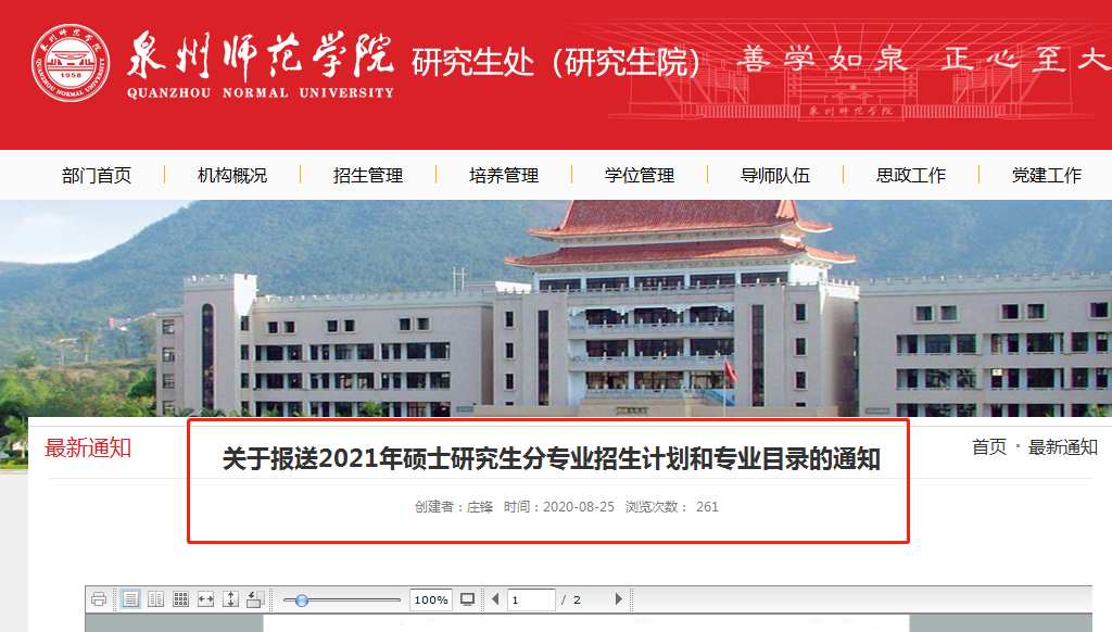泉州师范拼搏(中国)发布《关于报送2021年硕士研究生分专业招生计划和专业目录的通知》。