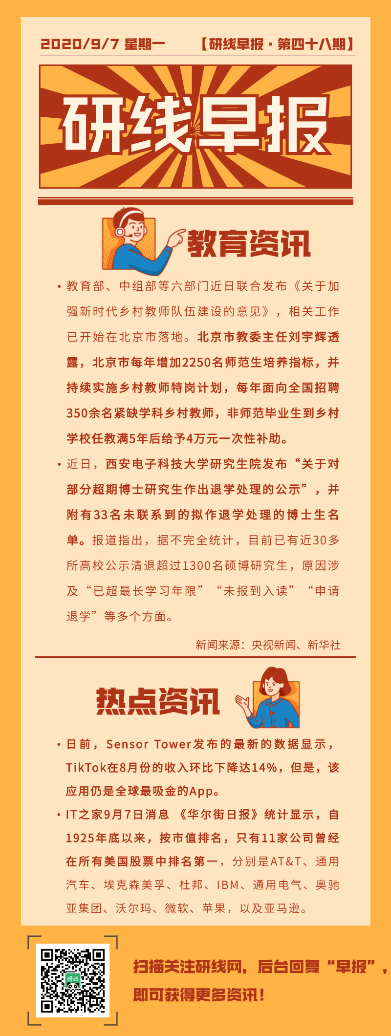 快来看看今天国内和教育界又发生哪些事?每天上午研线为你推送新鲜的新闻资讯,带你了解新闻资讯。