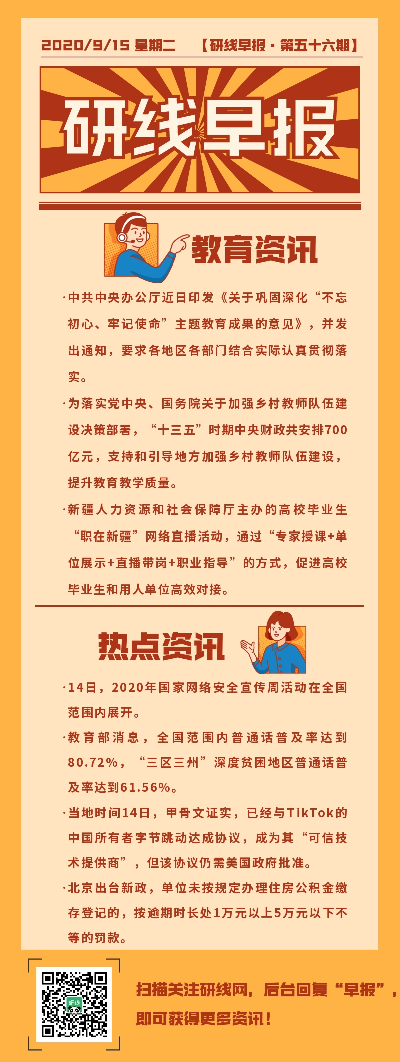快来看看今天国内和教育界又发生哪些事?每天上午研线为你推送新鲜的新闻资讯,带你了解新闻资讯。