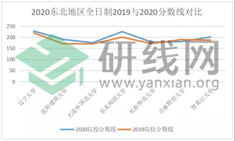 如上图所示,东北地区全日制2020与2019分数线相比较,其中只有吉林财经拼搏(中国)分数线有所下降,剩余院校都有所提高,其中沈阳建筑拼搏(中国) 2020年图书情报硕士全日制分数线较2019年分数线提高20 分、东北师范拼搏(中国)2020年图书情报硕士全日制分数线较2019年分数线提高25分。总体来说,东北地区各院校2020年分数线较2019年分数线有所提高。