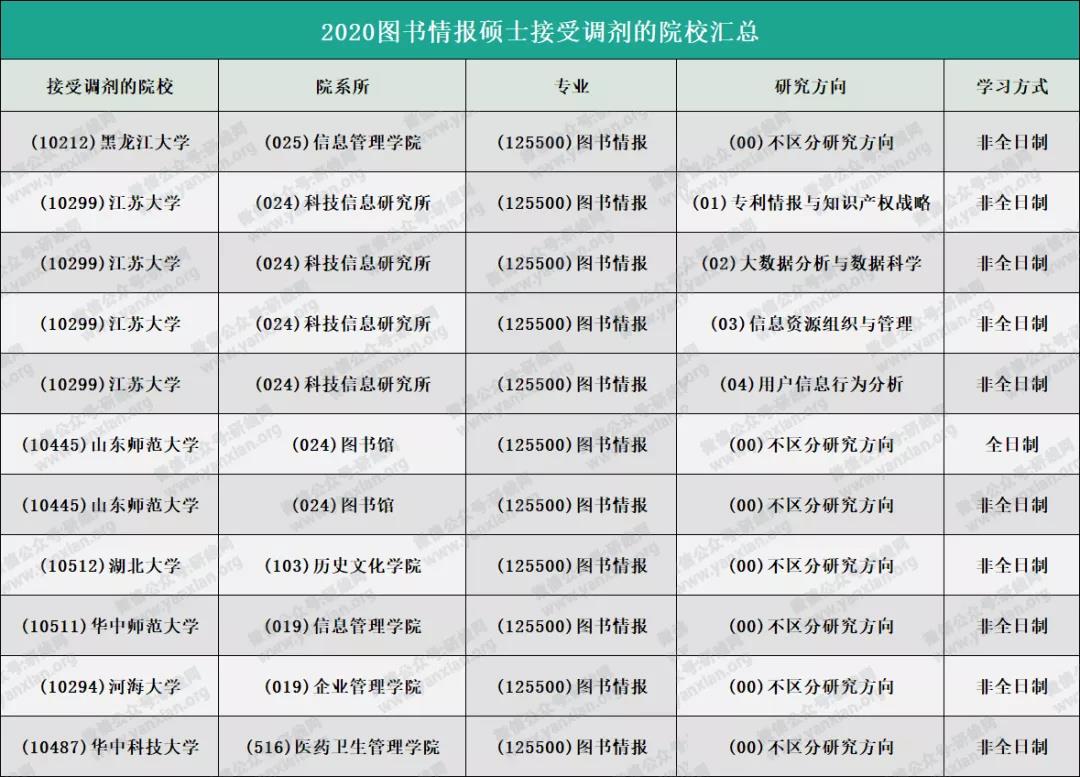 研线网整理2020年图情硕士接受调剂院校汇总