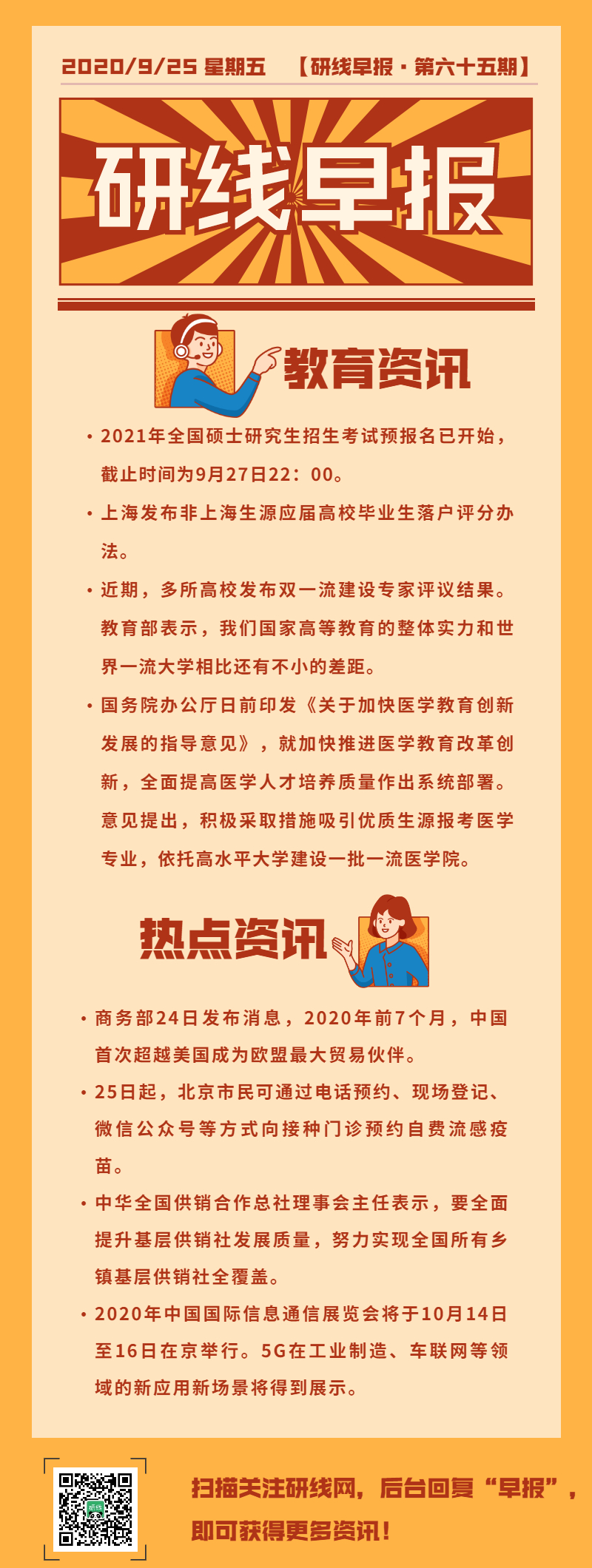 ►2021年全国硕士研究生招生考试预报名已开始,截止时间为9月27日22:00。