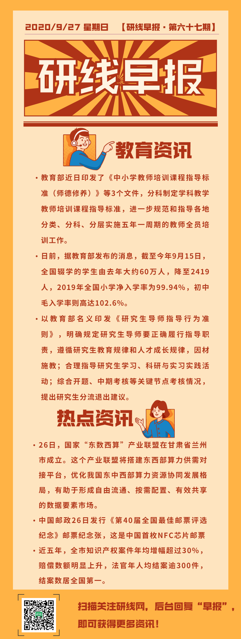 快来看看今天国内和教育界又发生哪些事?每天上午研线为你推送新鲜的新闻资讯,带你了解新闻资讯。