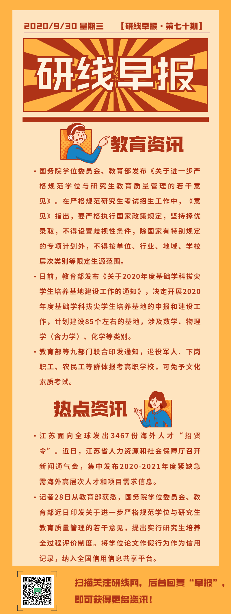 【研线早报·第七十期】2020年9月30日