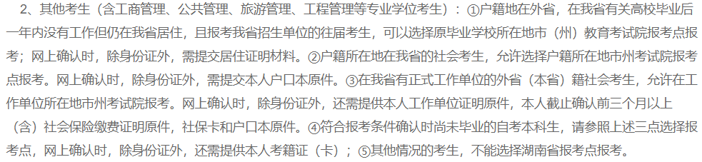 ⑤其他情况的考生,不能选择湖南省报考点报考。
