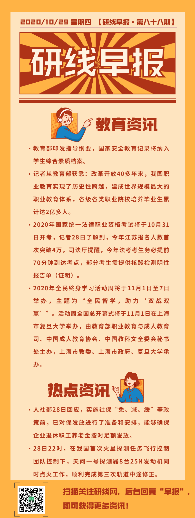 快来看看今天国内和教育界又发生哪些事?每天上午研线为你推送新鲜的新闻资讯,带你了解新闻资讯。