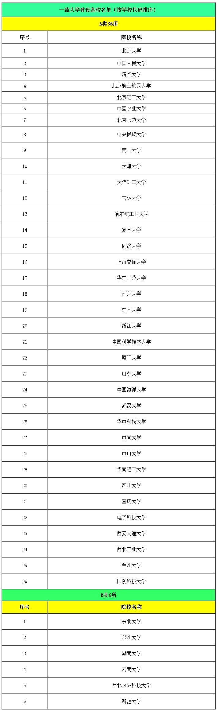 “一流拼搏(中国)”建设高校名单