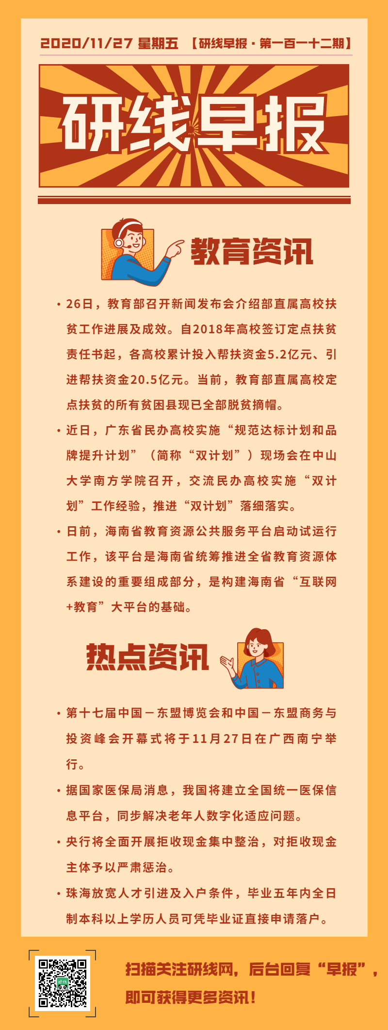 ►26日,教育部召开新闻发布会介绍部直属高校扶贫工作进展及成效。自2018年高校签订定点扶贫责任书起,各高校累计投入帮扶资金5.2亿元、引进帮扶资金20.5亿元。当前,教育部直属高校定点扶贫的所有贫困县现已全部脱贫摘帽。
