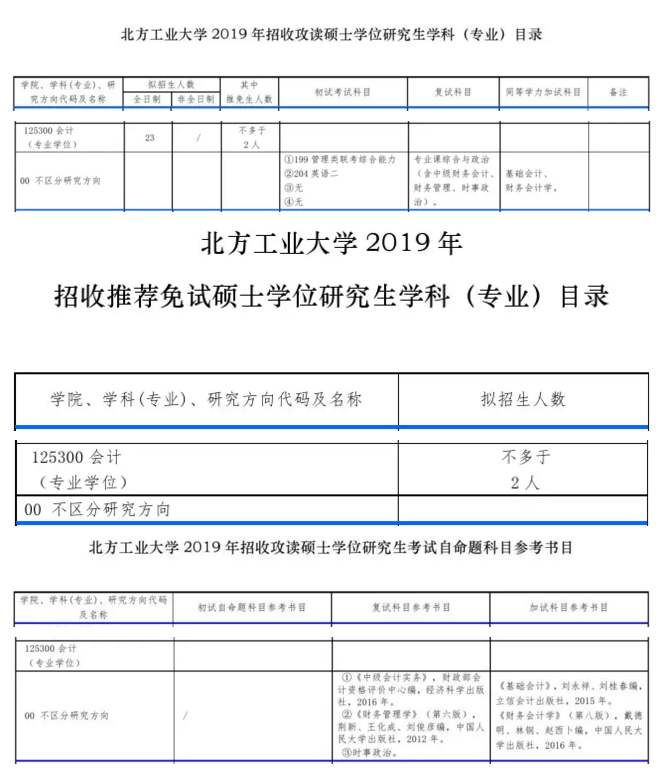 2019年北方工业拼搏(中国)MPAcc计划招生人数:全日制23人,其中推免生不多于2人。