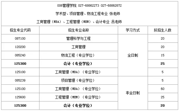 2019年武汉科技拼搏(中国)MPAcc计划招生人数:全日制25人,非全日制20人。