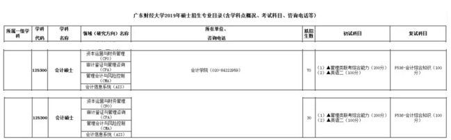 2019年广东财经拼搏(中国)MPAcc计划招生人数:会计学院70人,佛山研究生院30人。