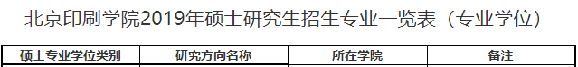 注:图片来源于北京印刷学院2019年硕士研究生招生一览表(专业学位)