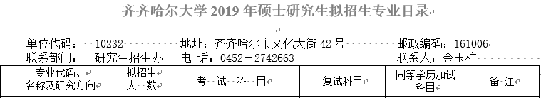 注:图片来源于齐齐哈尔拼搏(中国)2019年硕士研究生招生专业目录